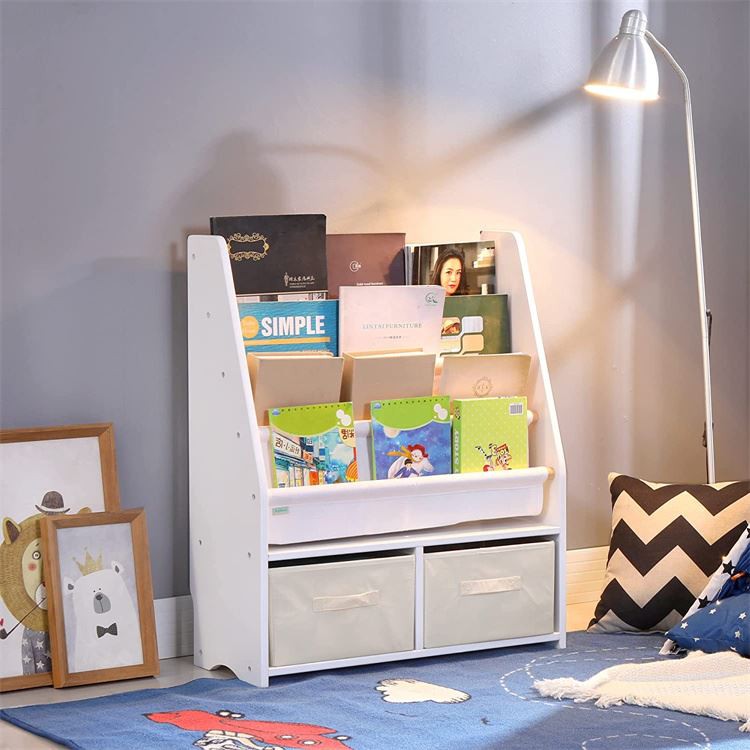 Dizajn koji štedi prostor i maksimalan prostor za pohranu, može pohraniti veliki broj knjiga, časopisa, igračaka itd. Knjige se mogu izlagati sprijeda ili pozadi umjesto na kralježnici, što djeci olakšava odabir knjiga. Promoviše organizaciju i vještine čitanja za djevojčice i dječake od 3 i više godina. Čvrsta drvena konstrukcija lako se sastavlja i čisti.
